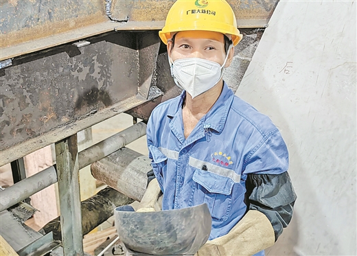 10月11日,广西五一劳动奖章获得者张振川准备焊接装置丙糖分蜜机。 记者 莫 迪/摄