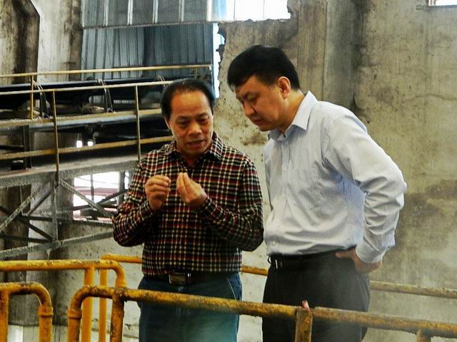 图为来宾市杨斌副市长(右一)在车间调研的情景。(林自龙摄)