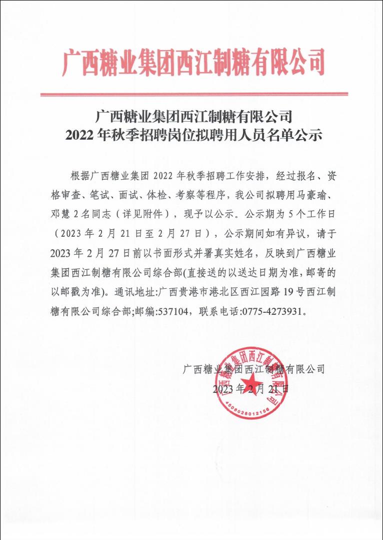 上一篇:广西糖业集团下属企业2022年秋季招聘第一批拟聘用职员名单公示